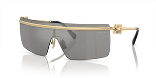 Discover the allure of Miu Miu with these stunning Geometric sunglasses for women. The PALE GOLD/LIGHT GREY SILVER color combination exudes sophistication, while the Metal frame in Gold adds a touch of luxury. The POLIAMIDE BIO lenses in Gray provide both style and protection. The SMU 50ZS model with mirrored lenses is a bold choice for the fashion-forward individual. With a 42/14/130 size, these sunglasses are a perfect fit for any face shape. Elevate your look with this exclusive Miu Miu design, available on Otticanet for those who appreciate originality in their eyewear collection.